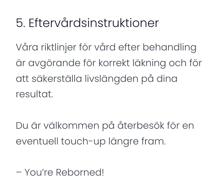 Det är sedan viktigt att du följer våra instruktioner efter varje pigmenteringen och under läkningsprocessen för att behålla ditt bästa resultat.