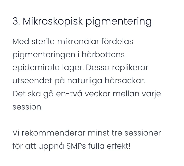 Under vår konsultation kommer vi gemensamt fram till vilken hårlinje som passar dig bäst och du kan i lugn och ro bestämma dig och vid behov även ändra dig då en SMP görs i minst tre steg med 1-2 veckors mellanrum för läkningsprocess.